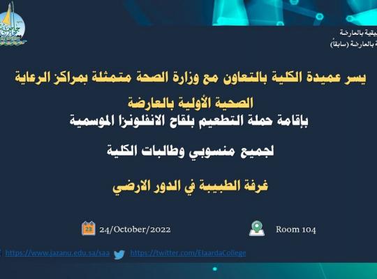 إقامة حملة التطعيم بلقاح الأنفلونزا الموسمية لجميع منسوبي وطالبات الكلية