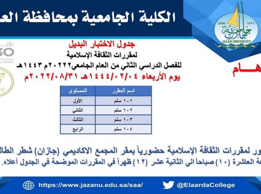 جدول الاختبارات البديل لمقررات الثقافه الاسلامية