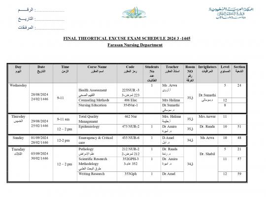 Final Theoretical and Practical Excuse Exam schedule - 20243
