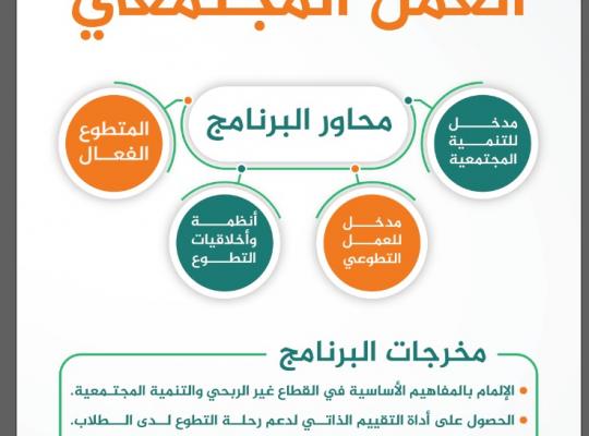 تدعوكم عمادة شؤون الطلاب للتسجيل في برنامج رائد بالتعاون مع أكاديمية الفوزان لحضور دورة مبادىء وأساسيات العمل المجتمعي يوم الأحد 2024/09/01م من الساعة ٧-١٠ مساءً عن بعد