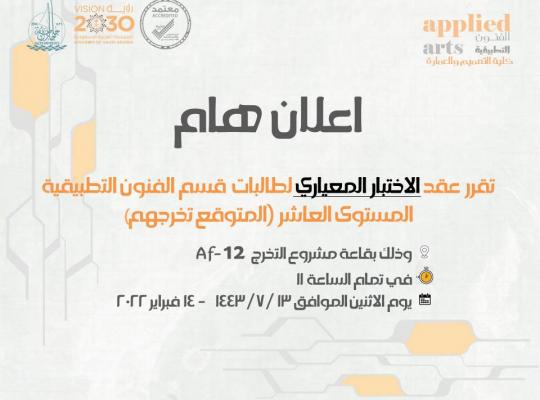 اعلان الاختبار المعياري لبرنامج الفنون التطبيقية