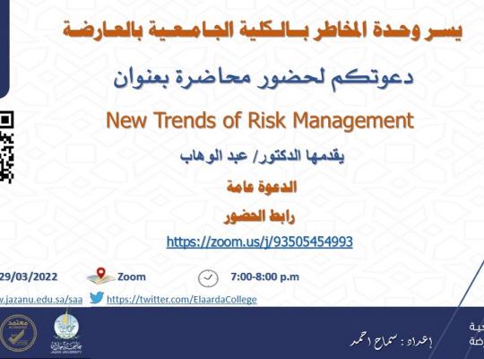 دعوتكم لحضور محاضرة بعنوان (New Trends of Risk Management)