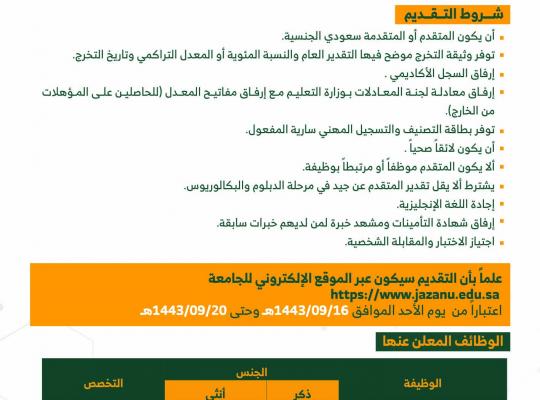 تعلن جامعة جازان عن فتح باب التقديم للرجال والنساء لشغل وظائفها عن طريق التعاقد على الكادر الصحي