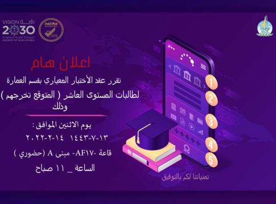 اعلان الاختبار المعياري لقسم اعمارة