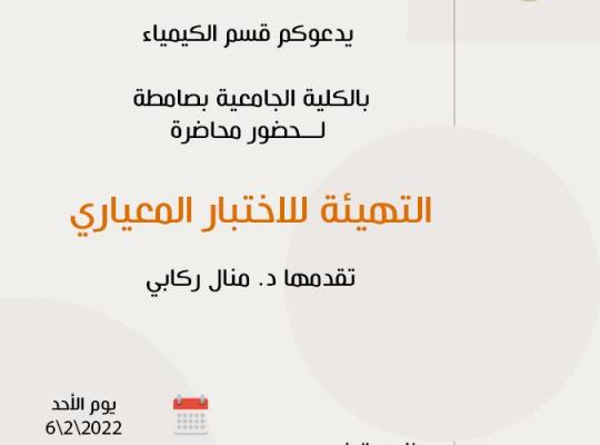 تتشرف الكلية الجامعية بصامطة بدعوتكم لحضور محاضرة بعنوان "التهيئة للاختبار المعياري"