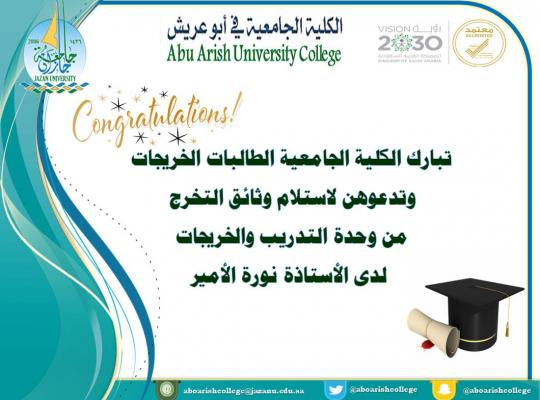 موعد تسليم وثائق التخرج للفصل الدراسي الأول(20221) بالكلية الجامعية بصامطة