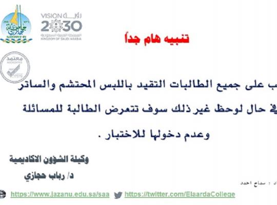 إرشادات الاختبارات بالكلية الجامعية بصامطة