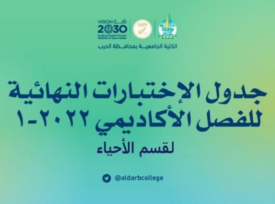 جدول الاختبارات النهائية للفصل الاول قسم الاحياء 1443هـ