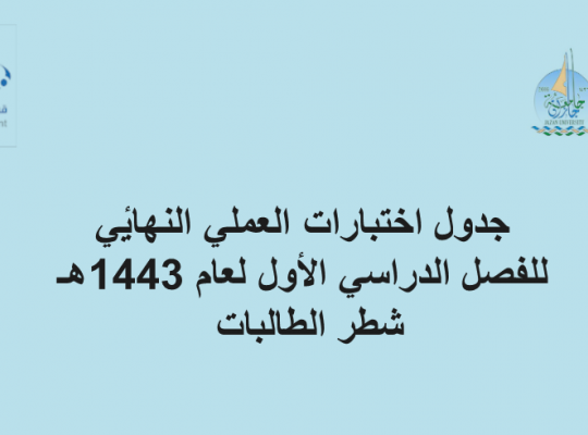جدول اختبارات العملي النهائي للفصل الدراسي الأول لعام 1443هـ شطر الطالبات