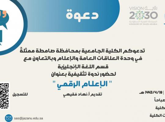 ندوة تثقيفية لمنسوبات الكلية بعنوان " الإعلام الرقمي"