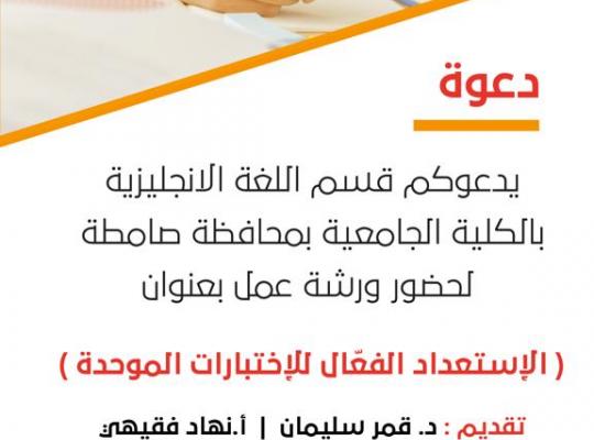ورشة عمل بعنوان " الإستعداد الفعال للإختبارات الموحدة"