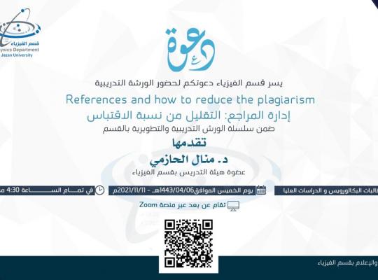 ورشة تدربية بعنوان "ادارة المراجع: التقليل من نسبة الاقتباس"