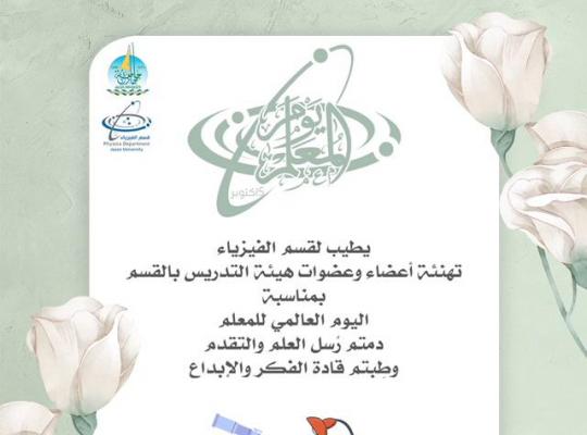 تهنئة أعضاء و عضوات هيئة التدريس بالقسم بمناسبة اليوم العالمي للمعلم