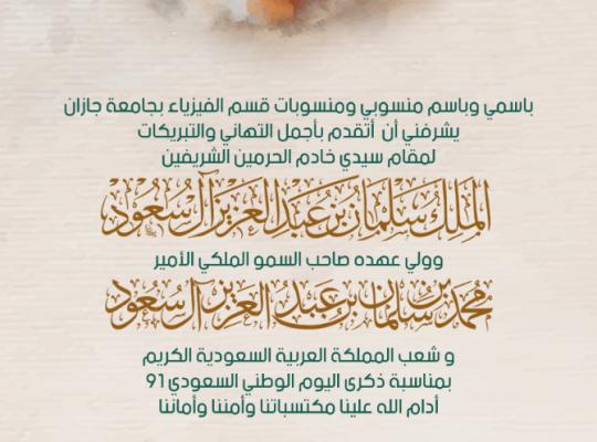 تهنئة القسم بمناسبة العيد الوطني السعودي 91