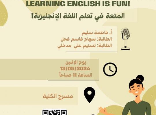 لقاء تفاعلي بعنوان "المتعة في تعلم اللغة الإنجليزية" بالكلية الجامعية بصامطة والكلية التطبيقية بصامطة