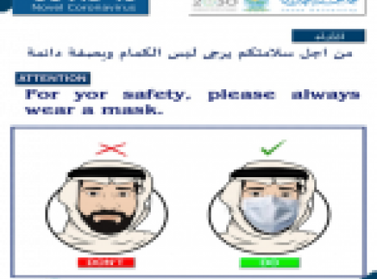 ارتداء قناع الوجه (الكمامة): عند الخروج و الدخول أو إذا احتجت إلى مشاركة منطقة مشتركة مع الآخرين فيجب البقاء على بعد متر أو أكثر من الأشخاص الآخرين لتقليل إنتشار المرض يجب عليك ارتداء قناع الوجه (الكمامة).