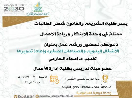 ورشة عمل بعنوان "تصميم البوستر العلمي" بالكلية التطبيقية بصامطة والكلية الجامعية بصامطة سابقاً