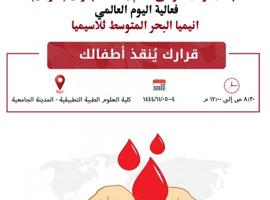 دعوة لحضور فعالية اليوم العالمي (انيميا البحر المتوسط ثلاسيميا).