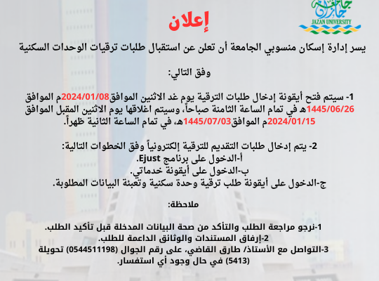 إعلان استقبال طلبات الترقية للوحدات السكنية