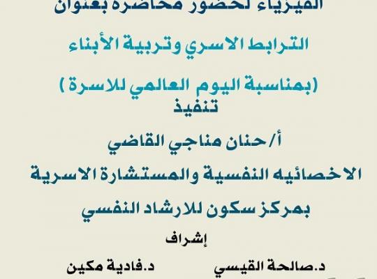 تدعوكم وحدة خدمة المجتمع لحضور (الترابط الاسري وتربية الأبناء -بمناسبة اليوم العالمي للأسرة)