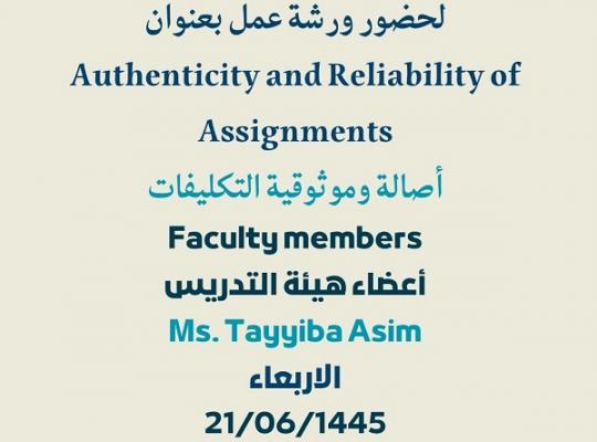 تدعوكم وحدة التعليم الإلكتروني بالكلية لحضور ورشة عمل (أصالة وموثوقية التكليفات)