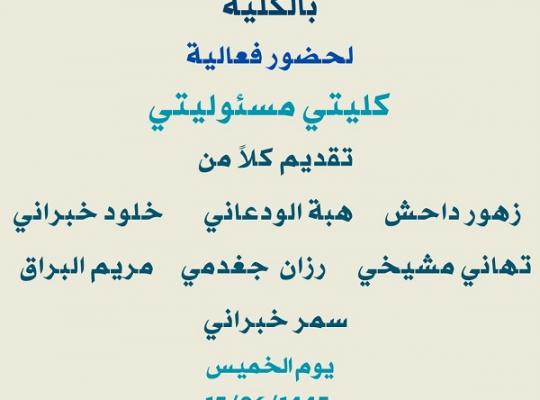 تدعوكم وحدة الارشاد الاكاديمي بالكلية لحضور فعالية (كليتي مسئوليتي)