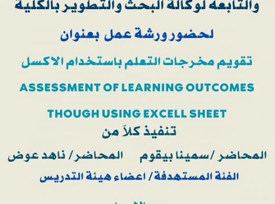 تدعوكم لجنة التطوير التابعة لوكالة البحث والتطوير لحضور ورشة (تقويم مخرجات التعليم باستخدام الاكسل)