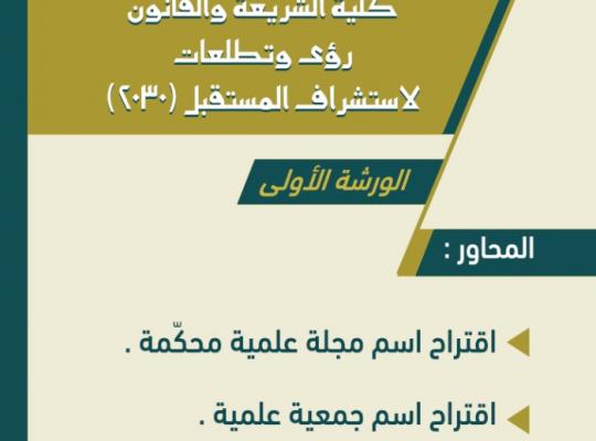 تدعوكم #كلية_الشريعة_والقانون لسلسلة اللقاءات العلمية التطويرية لاستشراف المستقبل٢٠٣٠