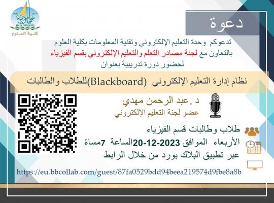 دورة تدربية بعنوان"نظام أدارة التعليم الاليكتروني" (Blackboard)