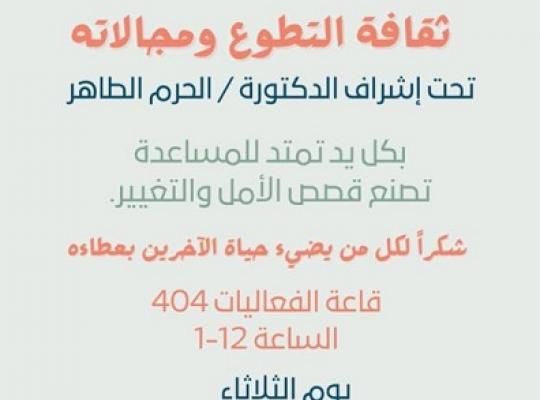 دعوتكم لحضور فعالية بعنوان (ثقافة التطوع ومجالاته)