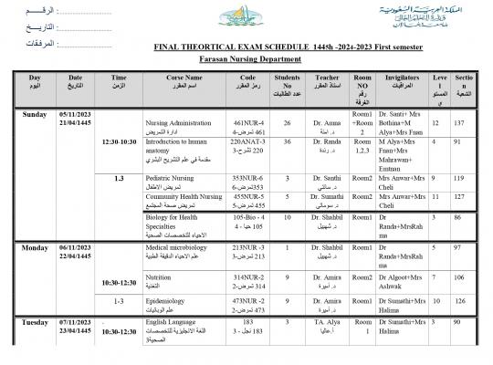 جدول الاختبارات النهائية لقسم التربية الخاصة 20231