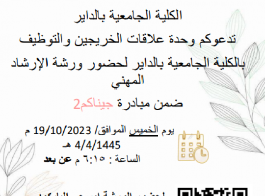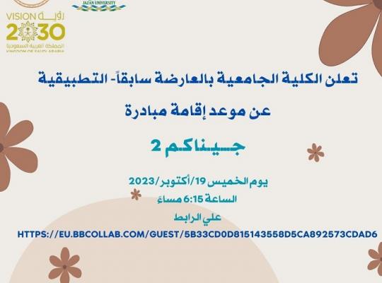 تعلن الكلية الجامعية بالعارضة سابقاً التطبيقية عن موعد إقامة مبادرة ( جيناكم 2 )