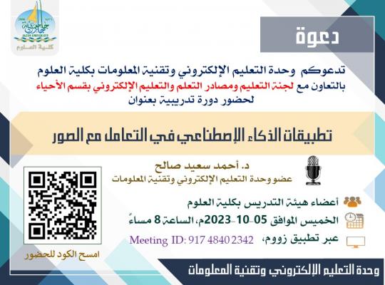 دعوة حضور دورة تدريبية بعنوان(تطبيقات الذكاء الاصطناعي في التعامل مع الصور).