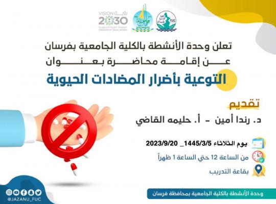 التوعية بأضرار المضادات الحيوية بالكلية الجامعية بفرسان