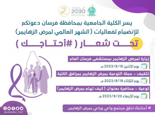 فعاليات (الشهر العالمي لمرض الزهايمر )بالكلية الجامعية بفرسان