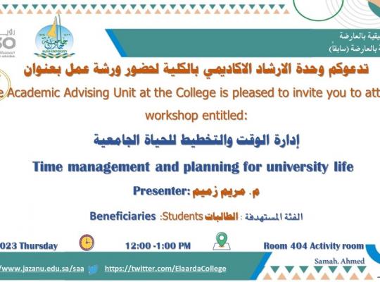ورشة عمل بعنوان ( إدارة الوقت والتخطيط للحياة الجامعية )
