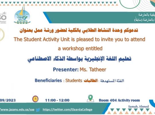 ورشه عمل بعنوان (تعليم اللغة الانجليزية بواسطة الذكاء الاصطناعي)