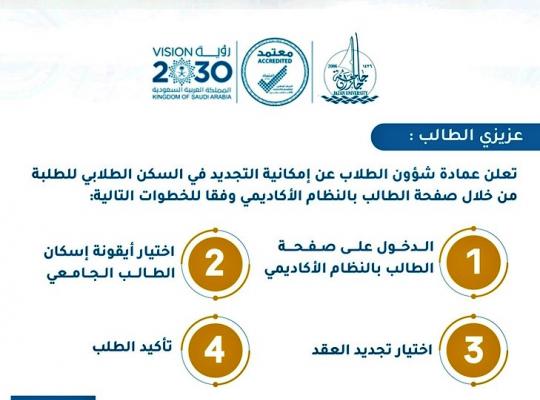 دعوة الطلاب المستجدين لحضور فعاليات ( أسبوع التهيئة ) للعام الجامعي1445هـ
