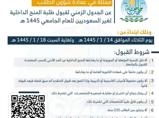 الجدول الزمني لقبول طلبة المنح الداخلية لغير السعوديين للعام الجامعي 1445هـ