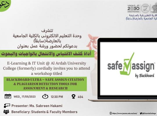 ورشة عمل بعنوان ( أداة كشف الاقتباس والانتحال بالواجبات والبحوث)