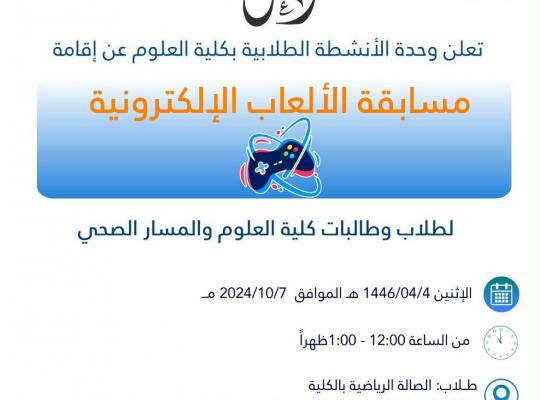 مسابقة الألعاب الإلكترونية لطلاب وطالبات كلية العلوم والمسار الصحي