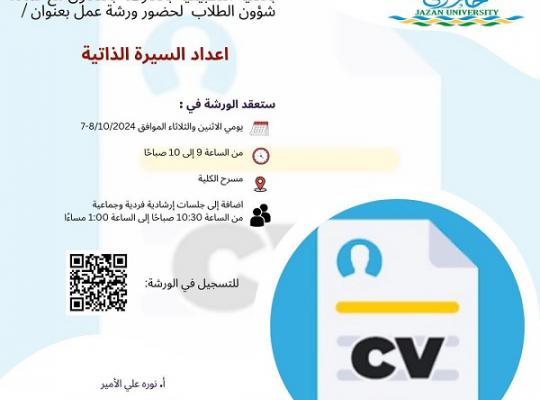 تدعوكم وحدة علاقات الخريجين والتوظيف لحضور ورشة عمل بعنوان ( اعداد السيرة الذاتية )