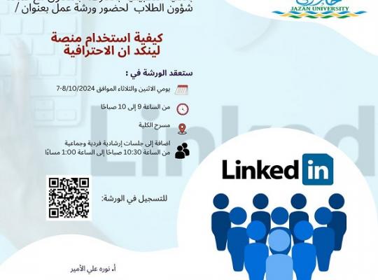 تدعوكم وحدة علاقات الخريجين والتوظيف لحضور ورشة عمل بعنوان( كيفية استخذام منصة لينكد ان الاحترافية )