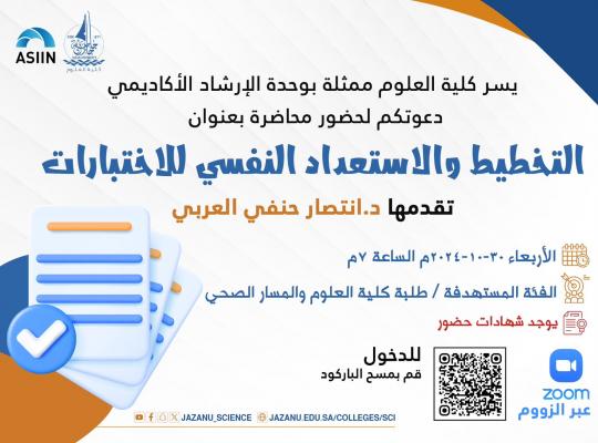 محاضة بعنوان "التخطيط والاستعداد النفسي للاختبارات" بكلية العلوم
