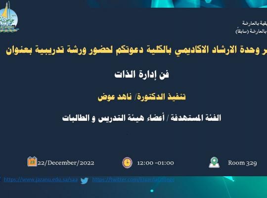 دعوه لحضور ورشة تدريبية بعنوان ( فن إدارة الذات )