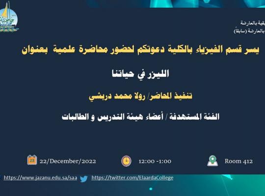 دعوه لحضور محاضرة علمية بعنوان(الليزر في حياتنا)