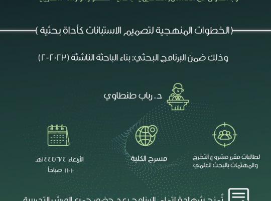 لقاء بعنوان "الخطوات المنهجية لتصميم الاستبانات كأداة بحثية" بالكلية التطبيقية بصامطة والكلية الجامعية بصامطة (سابقاً)
