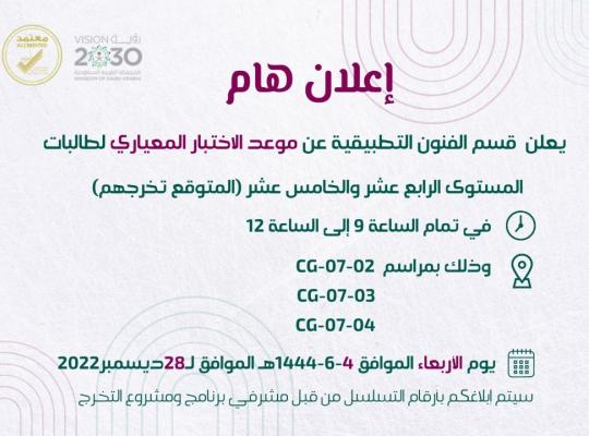 موعد الاختبار المعياري لقسم الفنون التطبيقية