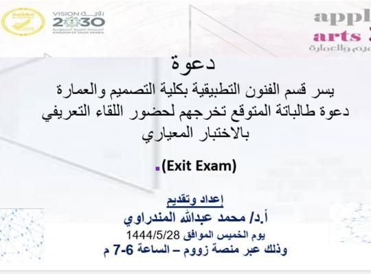 اعلان الاختبار المعياري لقسم الفنون التطبيقية
