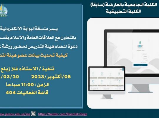 دعوة أعضاء هيئة التدريس لحضور ورشة عمل بعنوان (كيفية تحديث بيانات عضو هيئة التدريس)